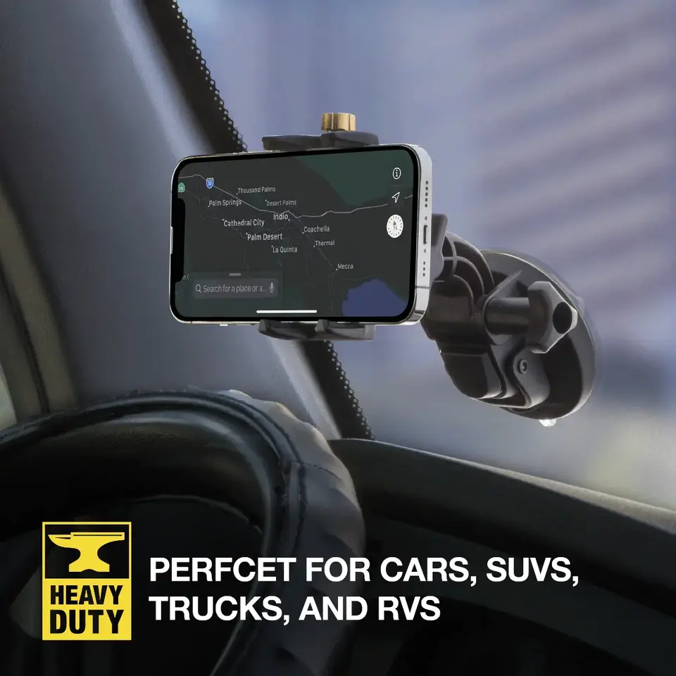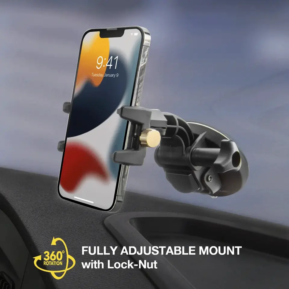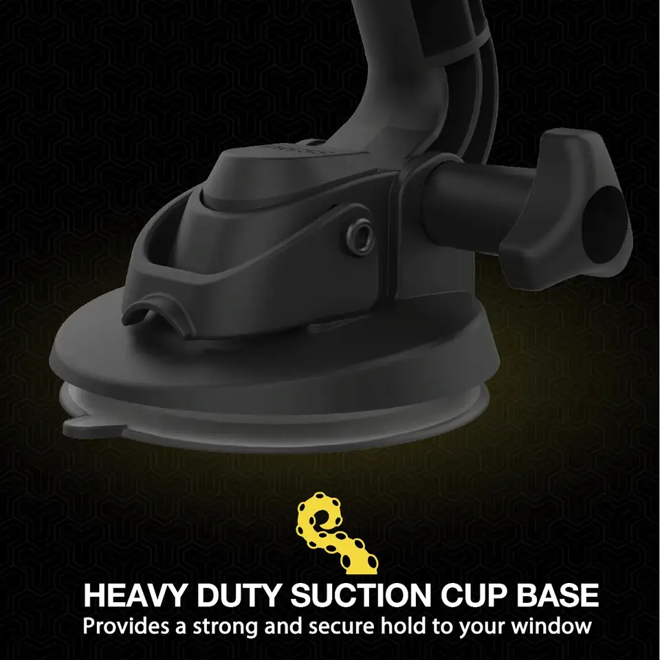 Uchwyt na szybę / deskę rozdzielczą przyssie się do niemal każdej powierzchni za pomocą przyssawki. Przyssawka zapewnia pewny chwyt na oknach i teksturowanych deskach rozdzielczych, dzięki czemu można zamontować urządzenie w dowolnym miejscu. Jeśli kiedykolwiek straci przyczepność, wystarczy spłukać przyssawkę letnią wodą, wstrząsnąć i pozostawić do wyschnięcia.